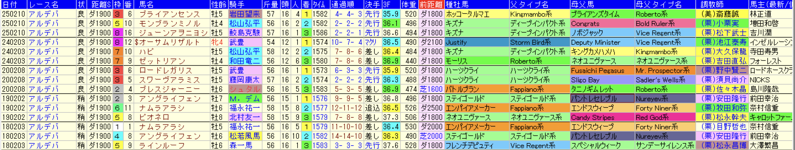 これを見れば縦比較で走破時計やレースラップがどれくらい優秀なのか把握できますし、予想の際にこれを見ればどの馬が強いレースを戦ってきたのかが一目瞭然です。
