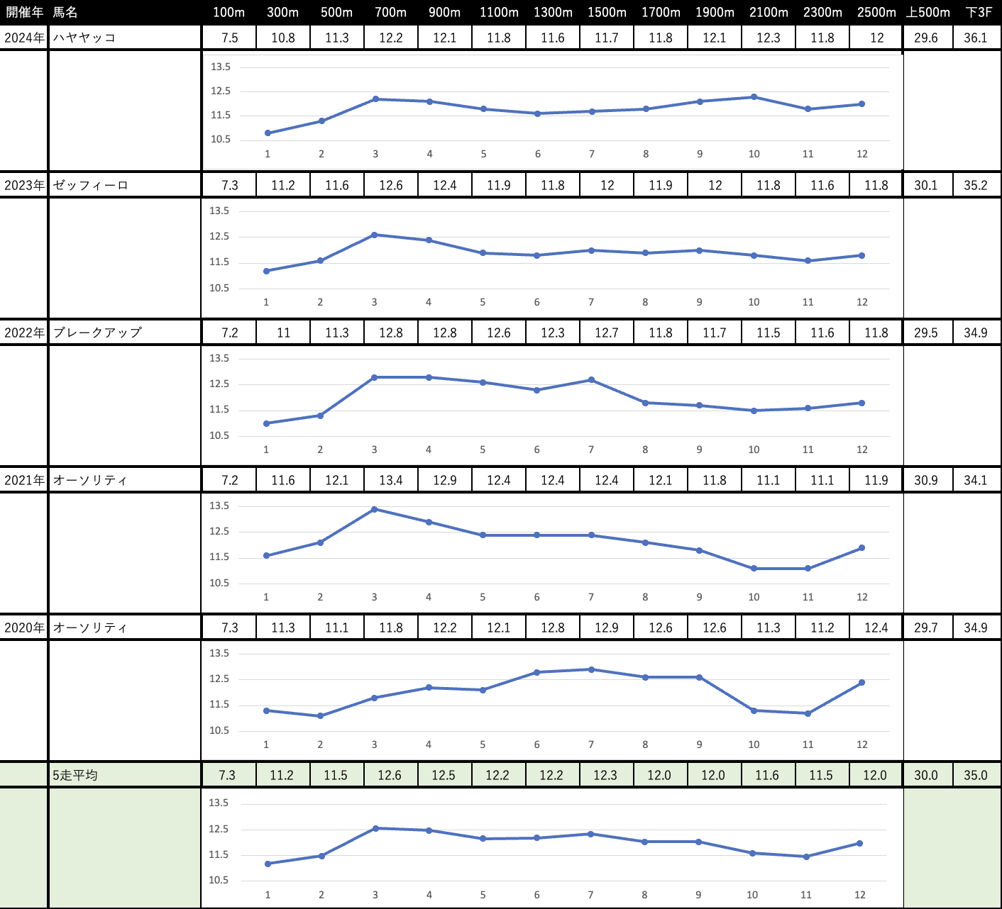 一時は超スローペースが乱発していた東京芝2500m重賞ですが、近3年はしっかりとした逃げ馬が出走してきて、きちんとペースが流れています。過去5年のラスト3ハロンは35.0で、超スローペースで推移した2021年でも上がり3ハロンは34.1。