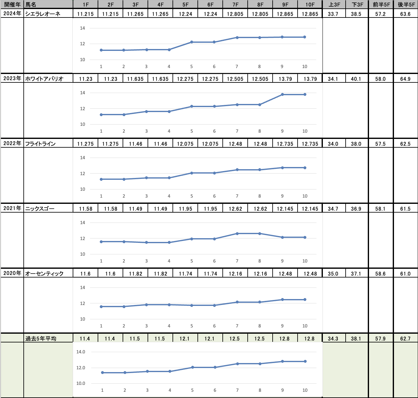 また、ブリーダーズカップクラシックは毎年開催される競馬場が異なります。過去5年それぞれ違う競馬場でのレースラップになるので、そのあたりも踏まえて参考にしていただければ。