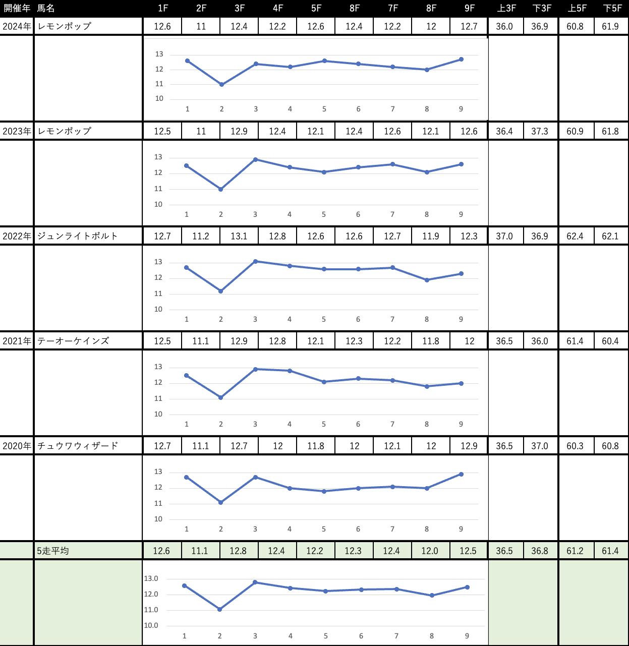 これを見れば縦比較で走破時計やレースラップがどれくらい優秀なのか把握できますし、予想の際にこれを見ればどの馬が強いレースを戦ってきたのかが一目瞭然です。
