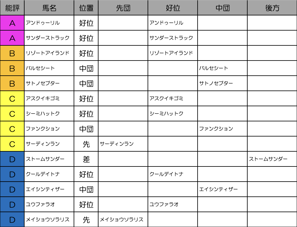 前走は完璧な立ち回りができていた印象。関東馬は基本的に走らないレースですし、ここはあんまり期待値が高くないか。