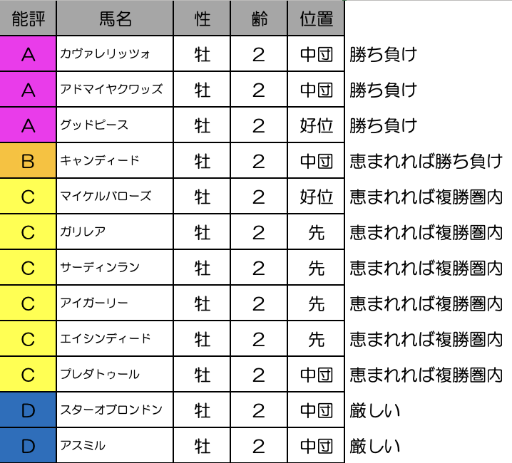 キャリアの浅い2歳馬同士のレースなのであまり展開想定は考えないほうがいいでしょう。