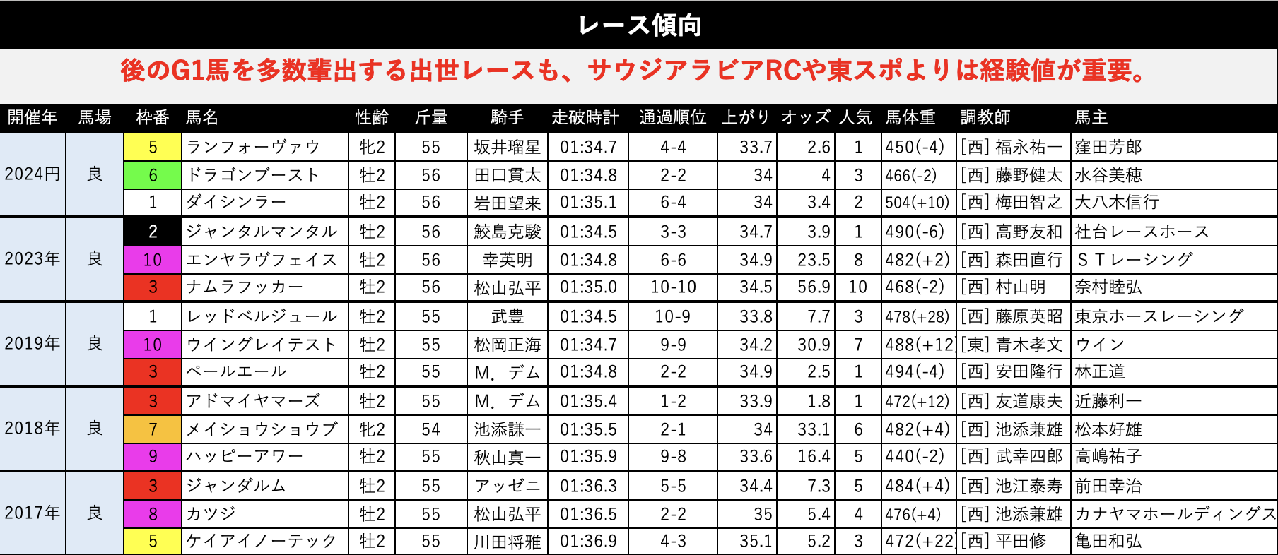 昨年に関しては、歴史的な超低レベル戦だったのであまり参考にはならないはず。近年のレース結果を参考にするならあくまで2023年を見るべきでしょう。
