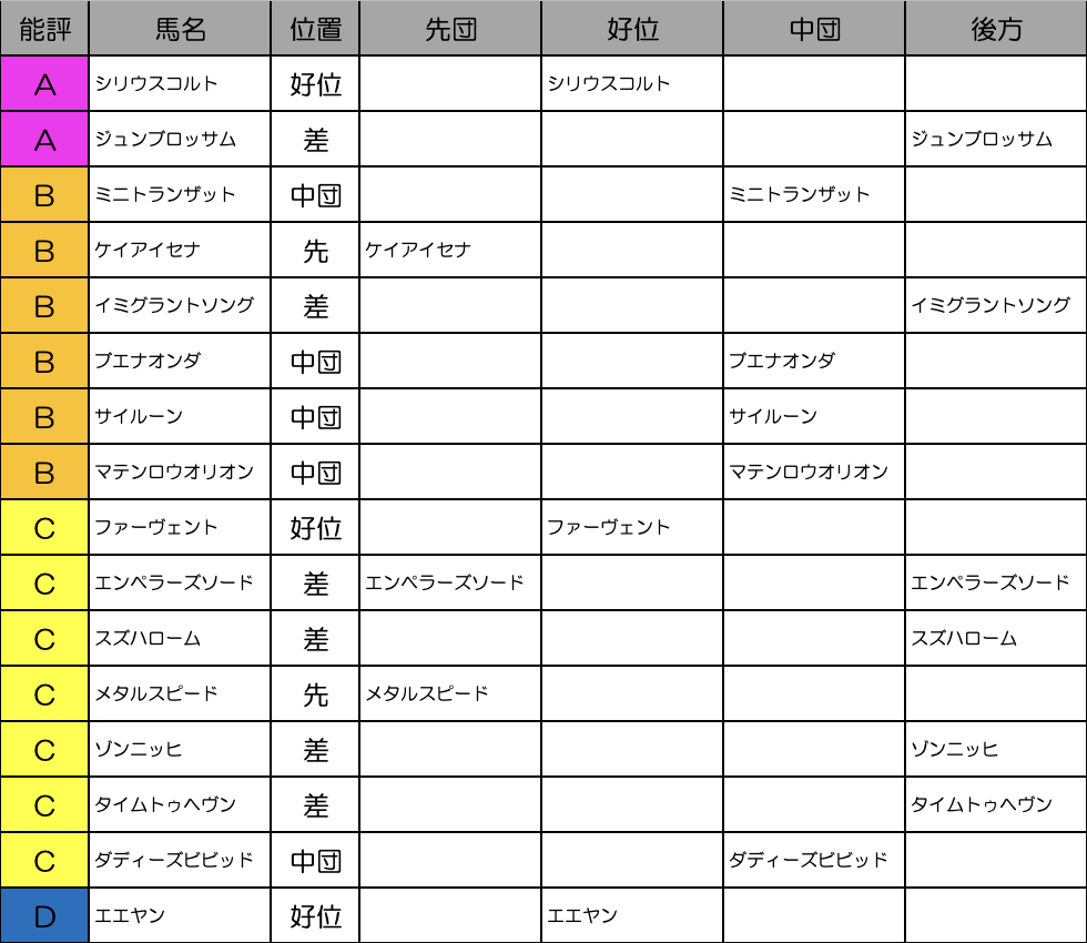 これを見れば縦比較で走破時計やレースラップがどれくらい優秀なのか把握できますし、予想の際にこれを見ればどの馬が強いレースを戦ってきたのかが一目瞭然です。