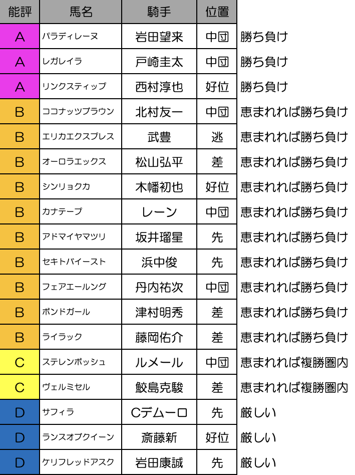 無双が続いているルメール騎手ですが、スティンガーグラスをまさか上位に持ってくるとは・・・ただ、そんなルメールでも終わった感あるステレンボッシュはさすがにどうなんでしょうか?