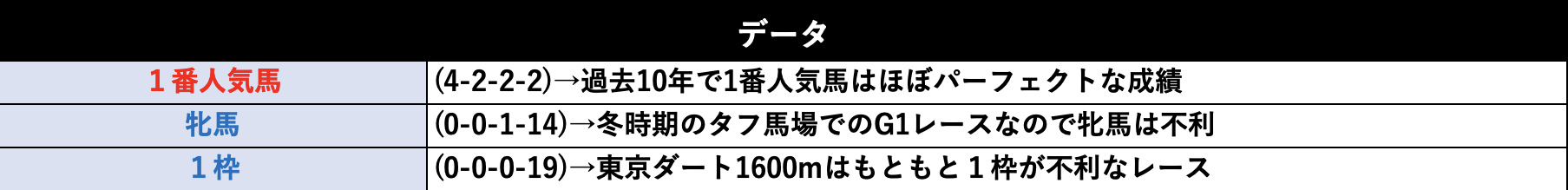 ダートのG1は強い馬が強いので1番人気成績は優秀。ただ、昨年は人気馬が全てぶっ飛んだように近年はフェブラリーステークスのメンバーレベルが下がってきているので、人気馬だから強いとも言えなくなってきているか。