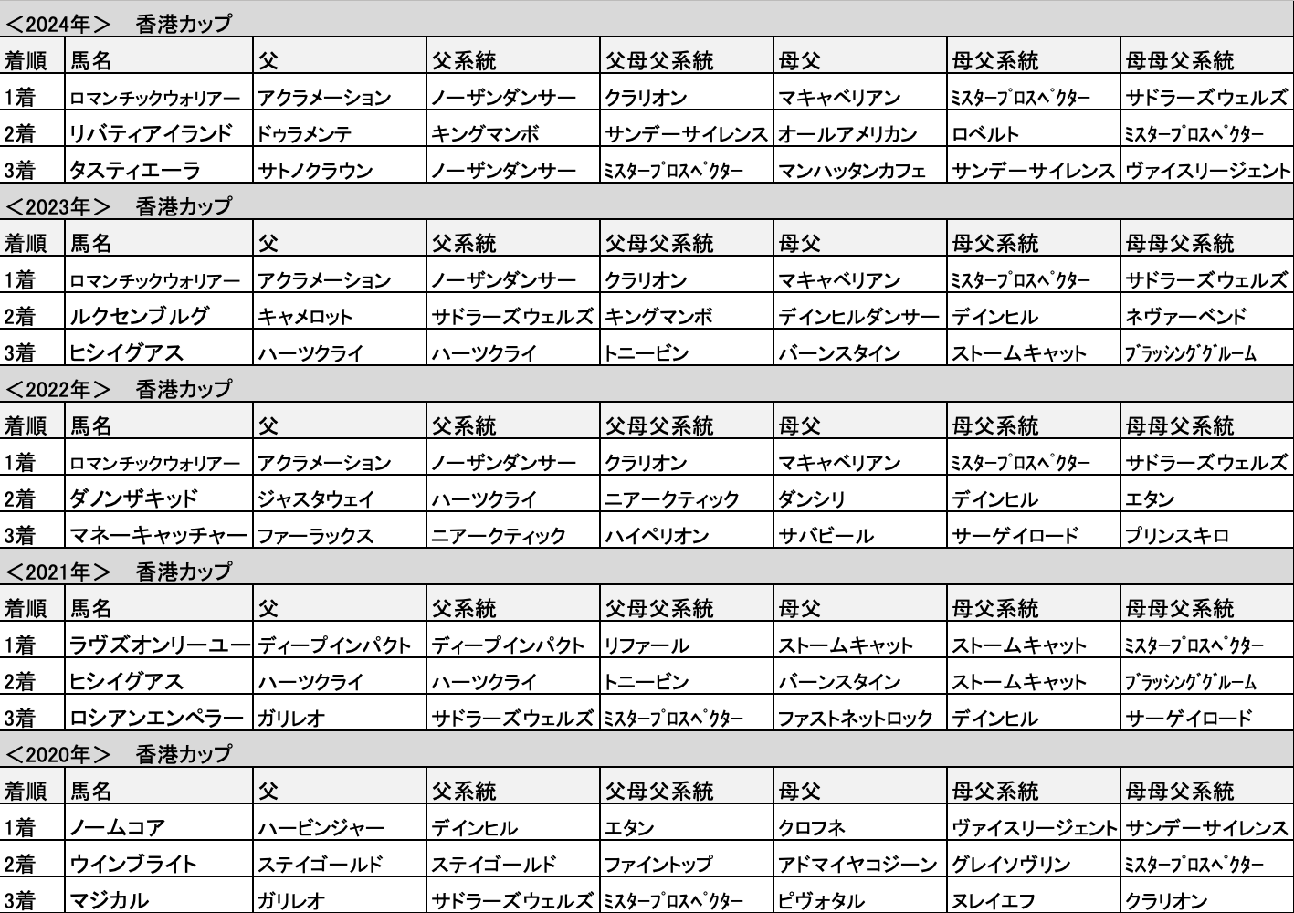 香港競馬はオーストラリアから馬を輸入していることもあってもともとダンジグ=デインヒルの血を持つ馬は多いですが、香港カップは特にダンジグ=デインヒルの血を持っている馬の活躍が目立っています。
