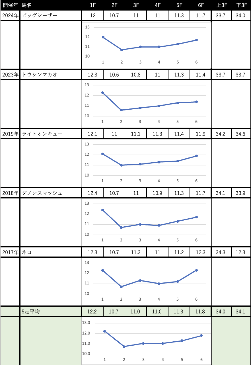 過去のレース結果を見てもかなり差しが決まっている傾向で、スプリント戦にしては差しが決まるイメージで考えていいかも。