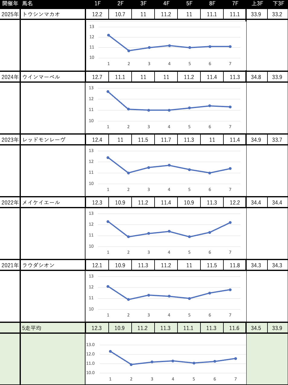 これを見れば縦比較で走破時計やレースラップがどれくらい優秀なのか把握できますし、予想の際にこれを見ればどの馬が強いレースを戦ってきたのかが一目瞭然です。