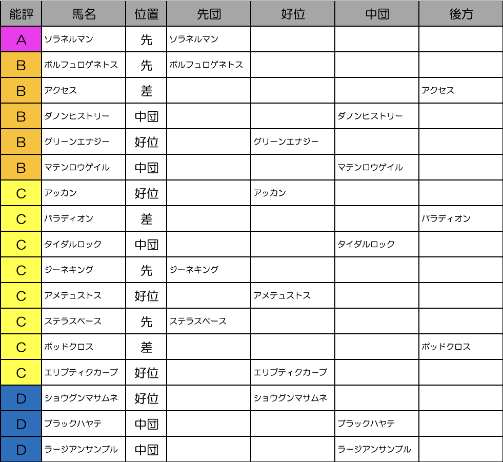 3歳戦なのでキャリアが浅い馬が多くてあんまり展開想定はしても仕方がないでしょう。