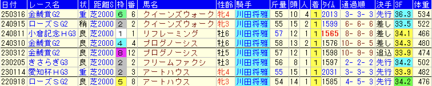 そんな高速馬場で川田騎手で逆噴射の可能性も怖くはあるのだが、この舞台の川田騎手の重賞成績は御覧の通りで驚愕の成績。