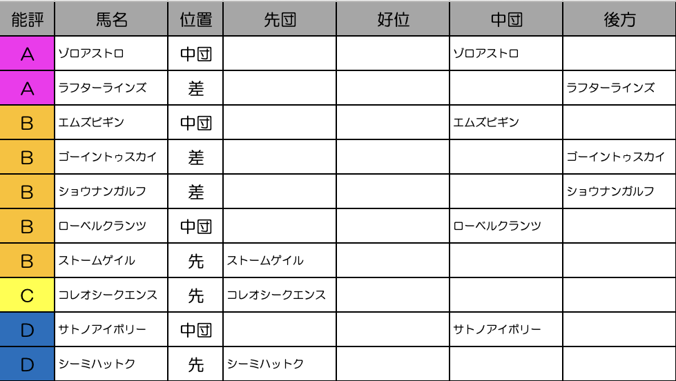 これを見れば縦比較で走破時計やレースラップがどれくらい優秀なのか把握できますし、予想の際にこれを見ればどの馬が強いレースを戦ってきたのかが一目瞭然です。