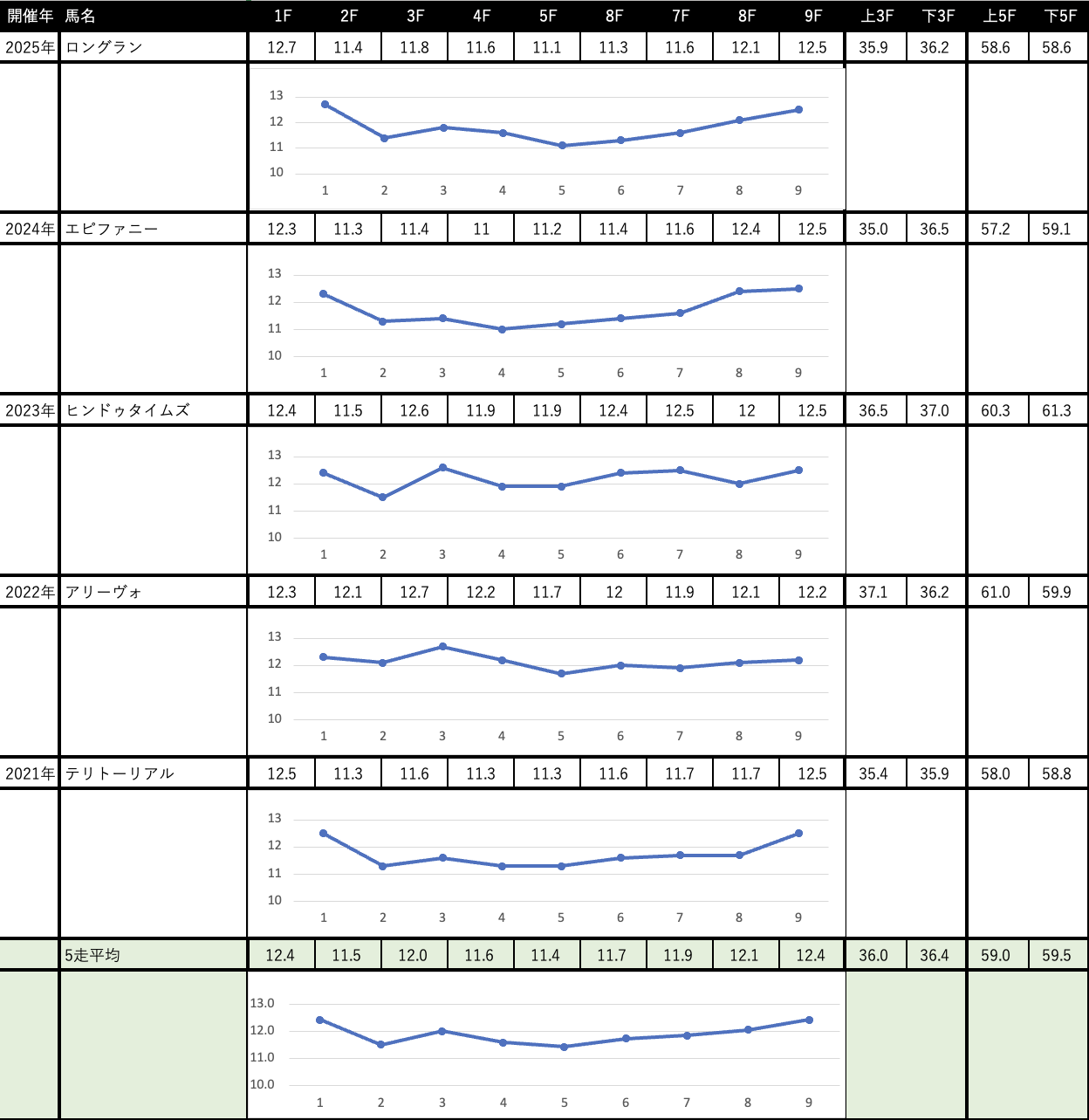これを見れば縦比較で走破時計やレースラップがどれくらい優秀なのか把握できますし、予想の際にこれを見ればどの馬が強いレースを戦ってきたのかが一目瞭然です。