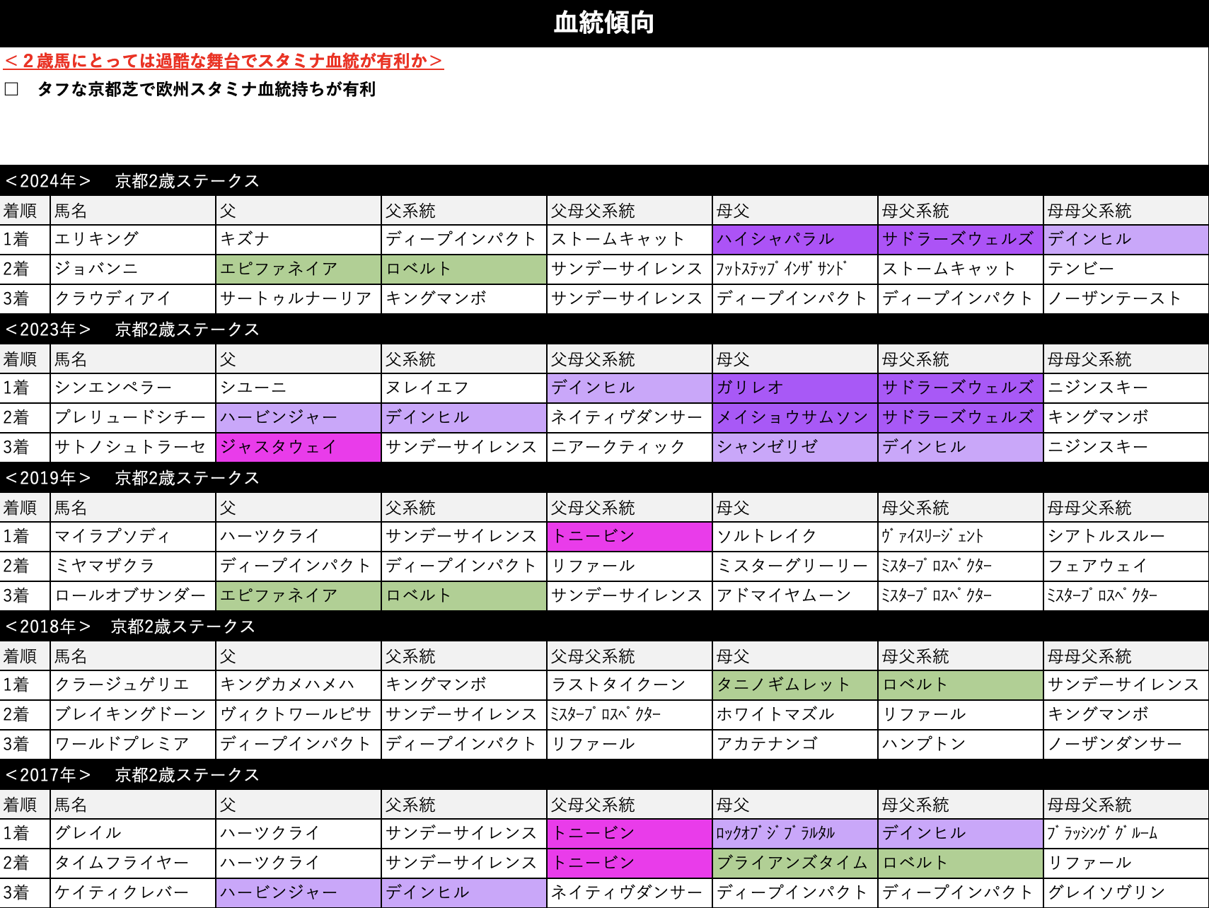2歳馬にとってはタフなレースということで欧州スタミナ血統の活躍がやたらに目立っています。
