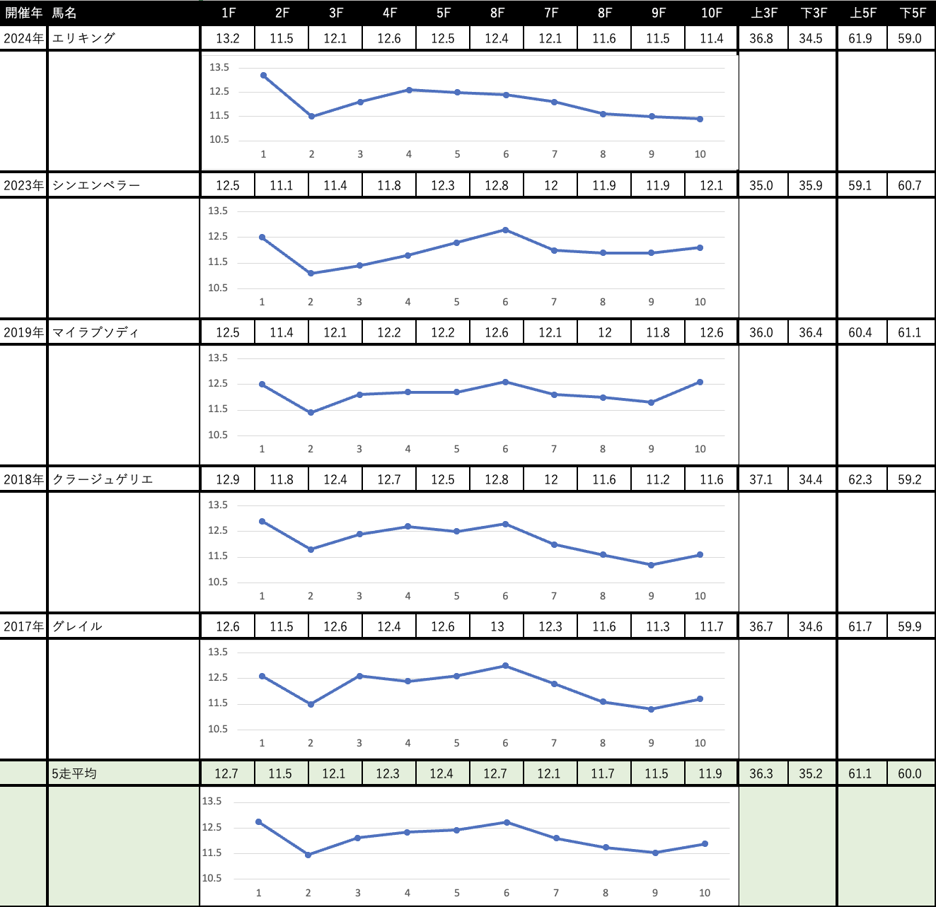 これを見れば縦比較で走破時計やレースラップがどれくらい優秀なのか把握できますし、予想の際にこれを見ればどの馬が強いレースを戦ってきたのかが一目瞭然です。