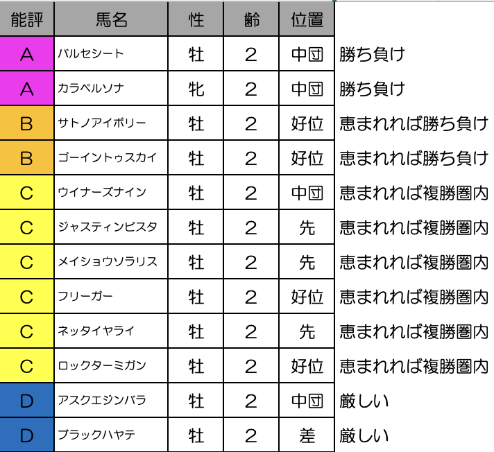 一昨年はこのレースからシンエンペラー、ダノンデサイル、コスモキュランダなどが出世していって価値のあるレースに。昨年もエリキングとジョバンニがクラシックを皆勤出走しました。