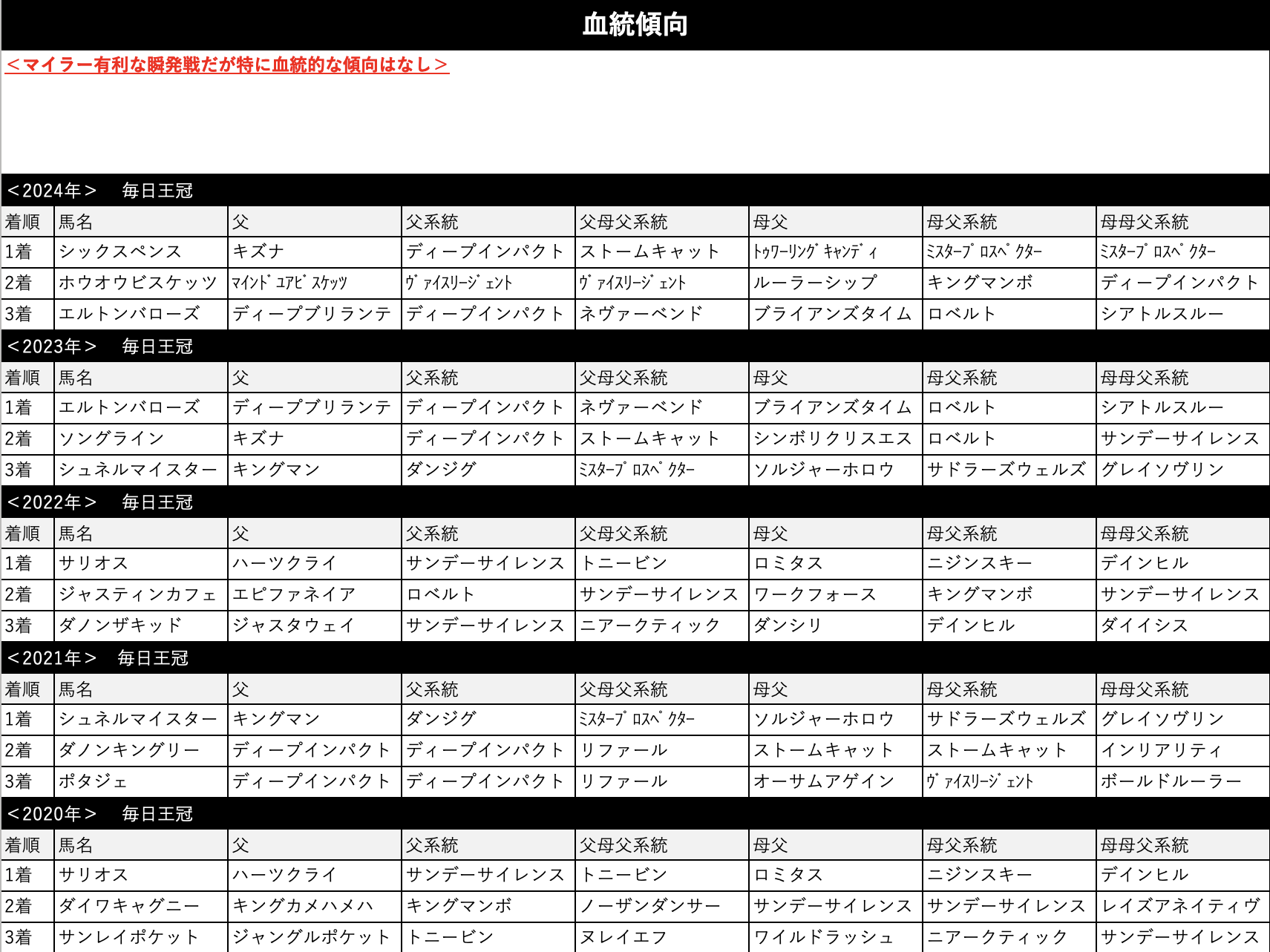 近年の結果を見ても特に血統的な傾向があるレースではなさそうですね。