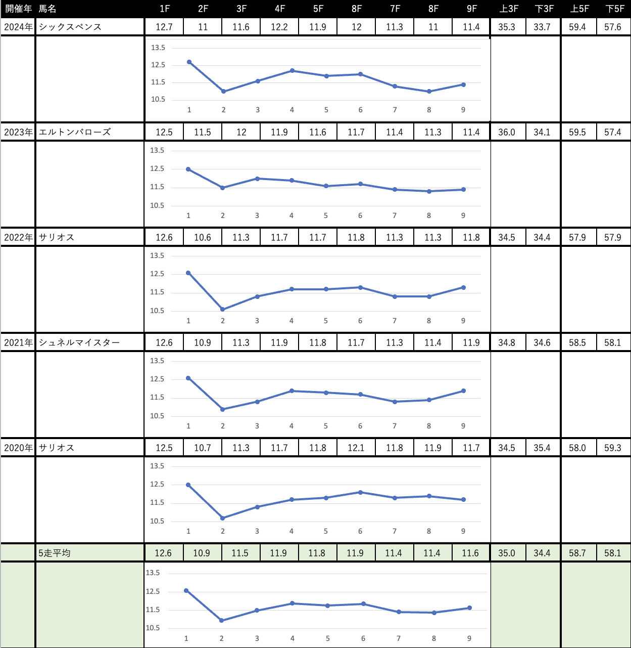 これを見れば縦比較で走破時計やレースラップがどれくらい優秀なのか把握できますし、予想の際にこれを見ればどの馬が強いレースを戦ってきたのかが一目瞭然です。