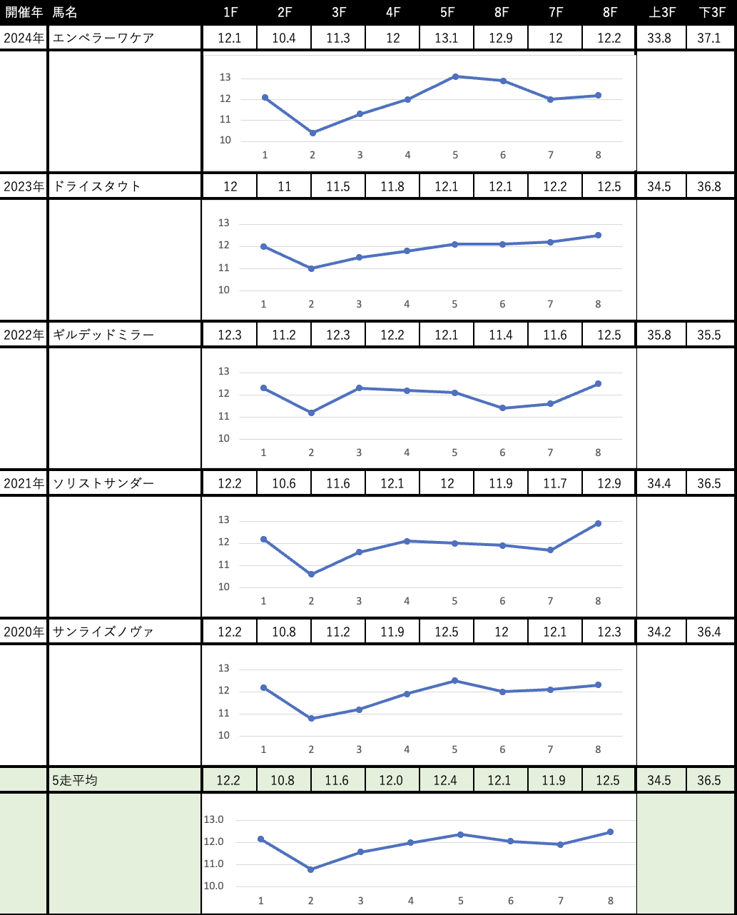 極端にスローペースになった2022年を除けば、どの年も前傾ラップの速いペースで上がりは掛かる傾向。東京ダート1600mは上級条件になればなるほど、キレ者タイプの馬が走りやすいですし、外目の枠を引いてスムーズに決め手を活かせる馬が走ってきています。