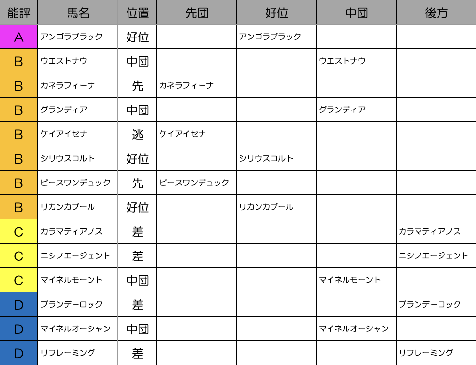 枠順次第で評価が変わるレースなので、現時点ではなんとも言えません。