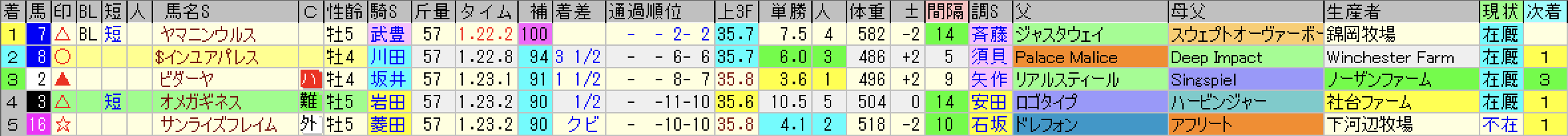特に強調したいのが東海ステークスの内容で、この時の中京ダートの馬場コンディションを考えるとヤマニンウルスの勝ち時計1分22秒2は異常。上位は相当なハイレベル戦だったと見てよく、実際に3着馬ビダーヤ、5着馬サンライズフレイムはその後にハイレベルだった武蔵野ステークスで3、4着に好走。4着馬オメガギネスはグリーンチャンネルカップを凄まじい内容で圧勝しましたし、それら強敵に差をつけての2着だったインユアパレスは普通に強い競馬をしていたか。