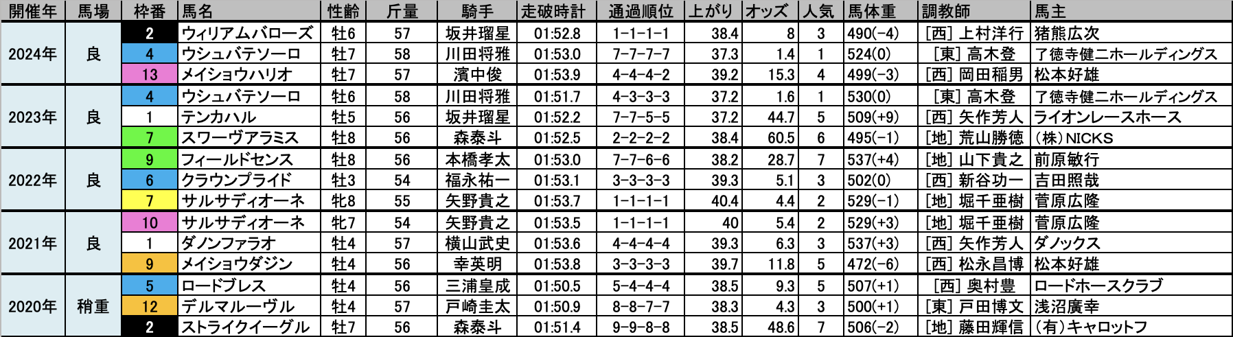 そんな感じで強い馬が出走してくるレースなため、無茶な穴狙いは禁物傾向。有力馬が出走してこない年は別として、有力馬が出走してきたら逆らわない方がいいでしょう。