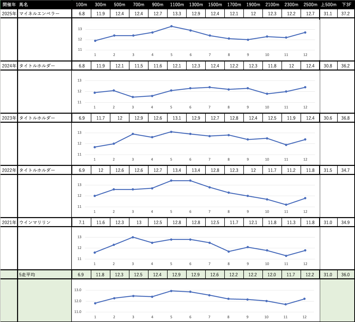 これを見れば縦比較で走破時計やレースラップがどれくらい優秀なのか把握できますし、予想の際にこれを見ればどの馬が強いレースを戦ってきたのかが一目瞭然です。