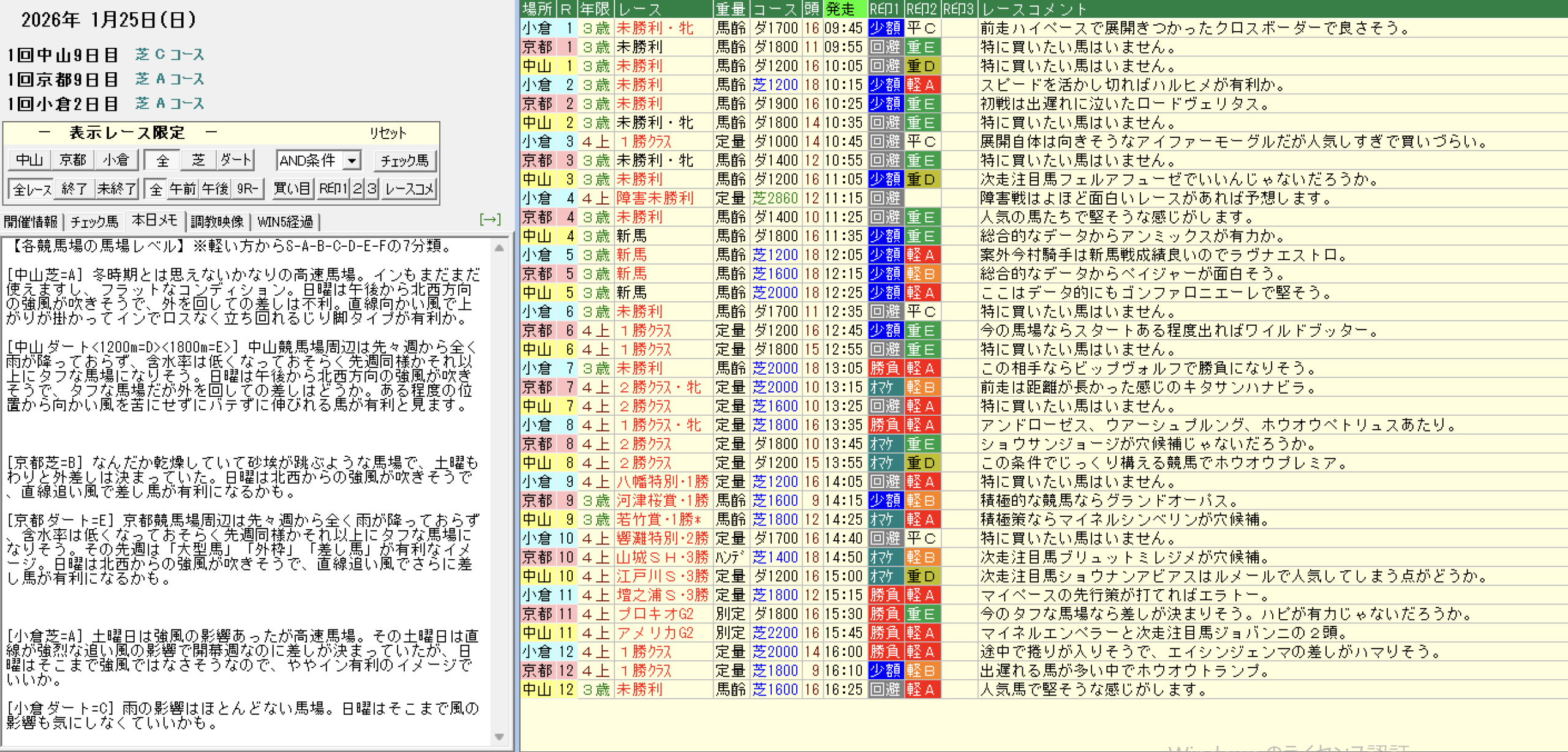 2026年1月4週の中央競馬レース回顧です。前の週に行われた中央競馬の