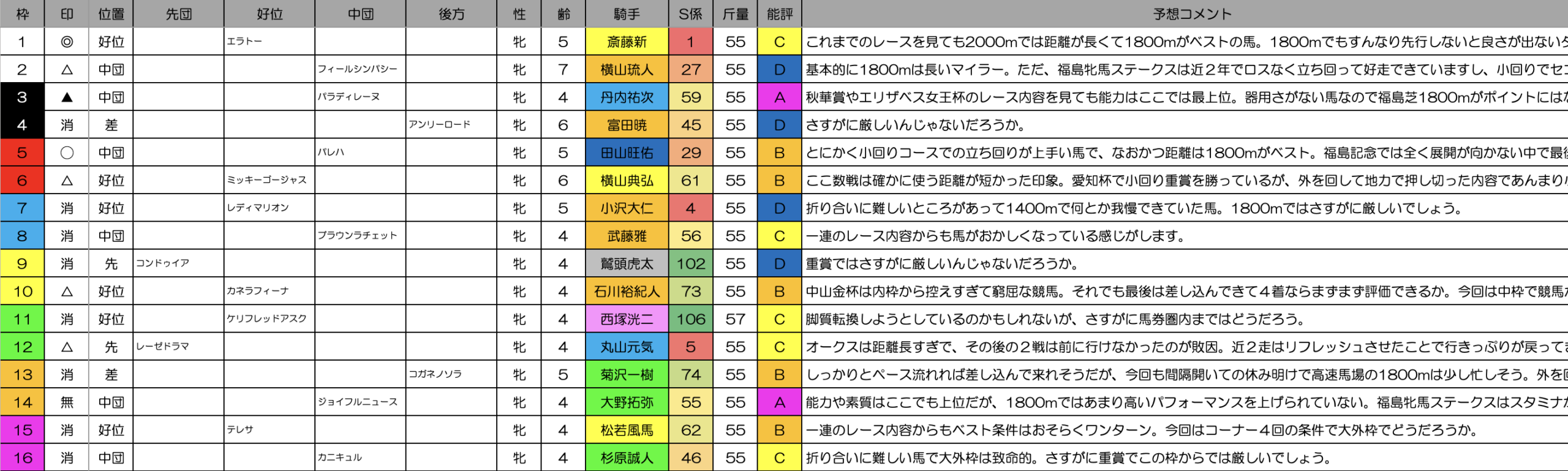 福島牝馬ステークス2026(福島芝1800m)のレース予想です。