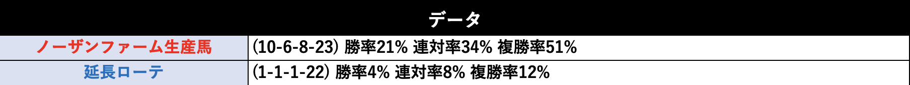 王道条件で素質がはっきり問われるレースなのでノーザンファーム生産馬の成績は優秀。延長ローテの馬はさっぱりなレースです。