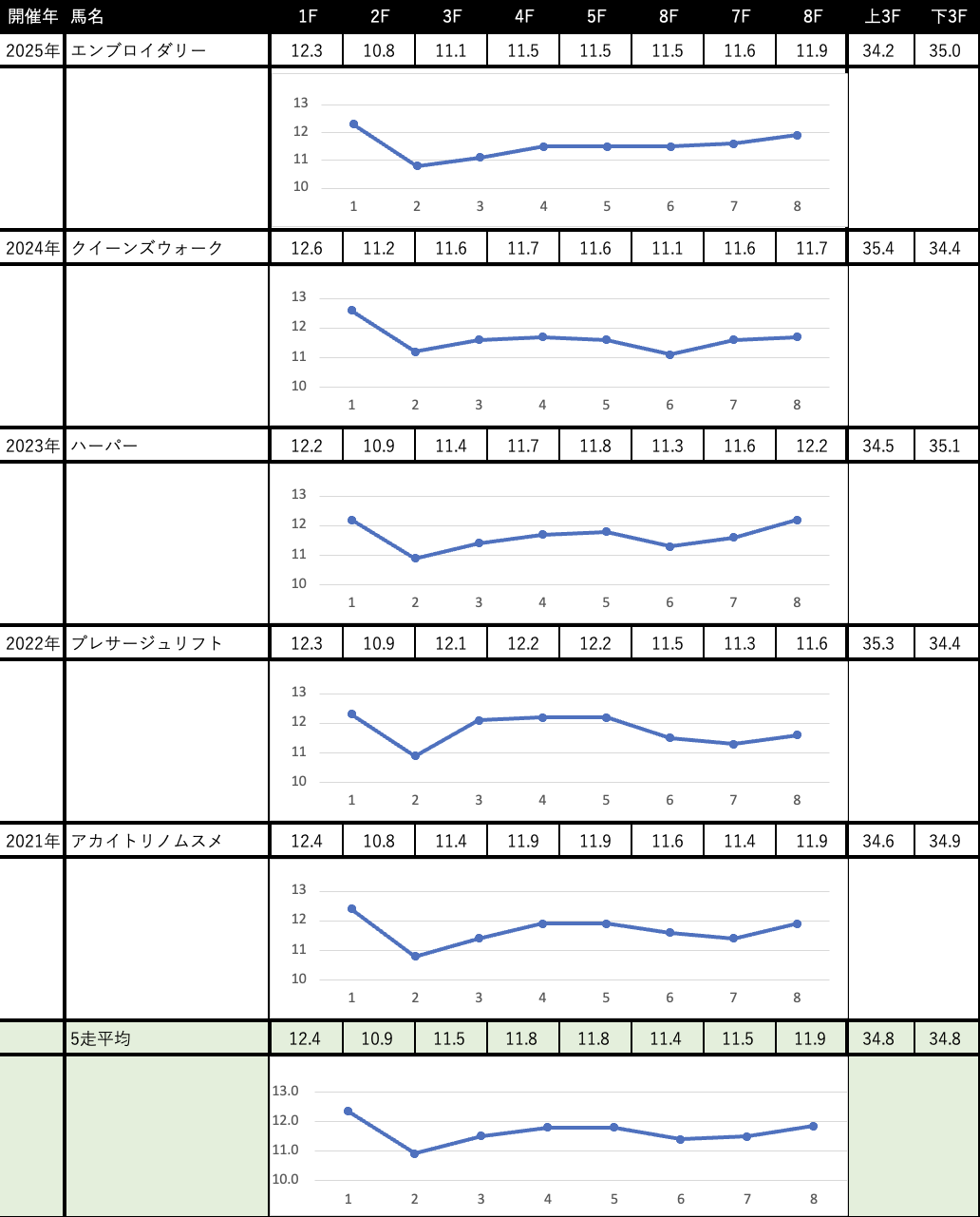 これを見れば縦比較で走破時計やレースラップがどれくらい優秀なのか把握できますし、予想の際にこれを見ればどの馬が強いレースを戦ってきたのかが一目瞭然です。