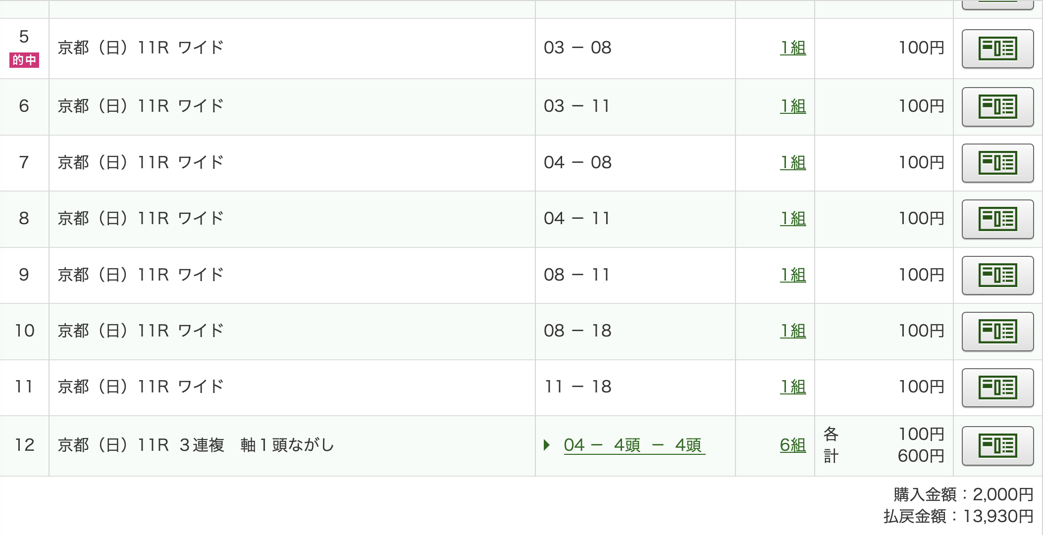 結果はもう内枠の馬が上位独占で、こちらが想定していた通り。ただ、本命のクアリフィカーが2回も大きな不利を受けて後ろからで競馬にならず、ダブル本命のカルパナも初騎乗の鞍上がひよって位置を落として外を回す競馬で不完全燃焼すぎました。狙いは間違っていなかったと思うので、また来年的中できるように頑張ります!!
