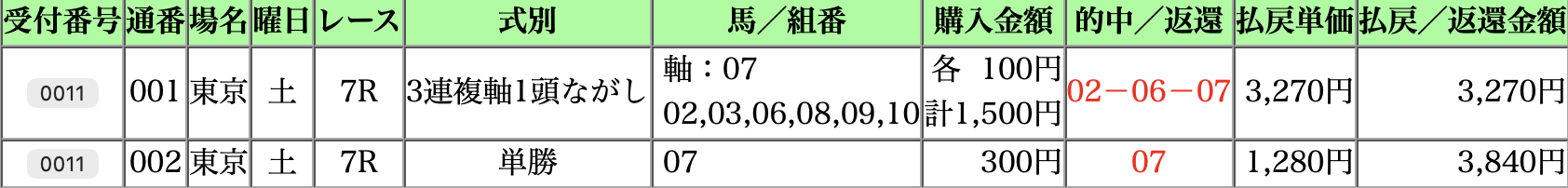 平場のレースの方も土曜は東京7レースがバッチリ的中できて良い結果となりました。最後にそれを載せて終わりと致します。