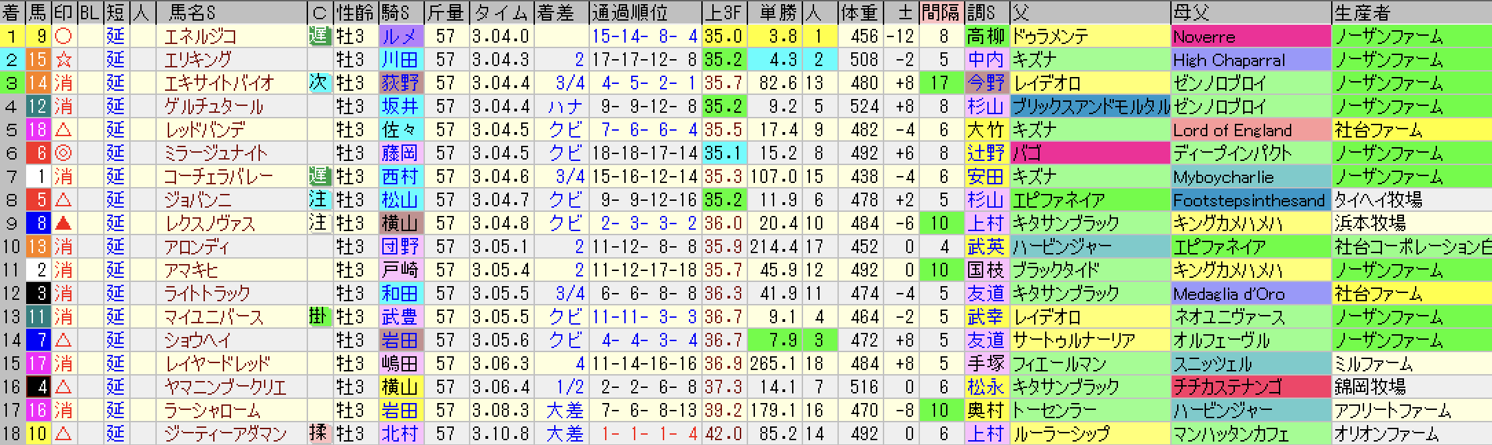 一方で穴を開けたのが13番人気のエキサイトバイオ。しかもこの馬は先行馬壊滅の展開で、外枠から終始外外を回っての3着で、一番強い競馬をしたのでは??