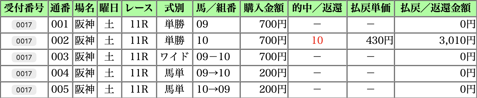 まぁあの差は運なので特に悲観する必要はないのですが、この三連複9,000円もつくんですね。そんなつくならダブル本命で三連複も買っておけば良かった。