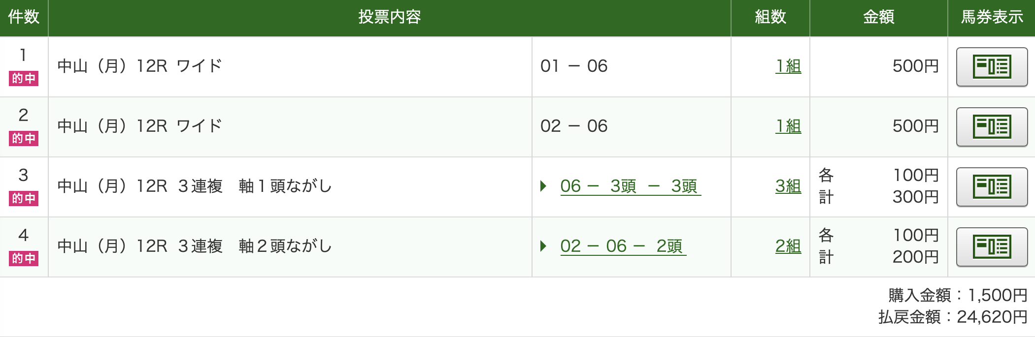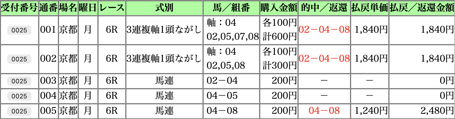 3日間開催は土曜日が全く買いたいレースがなくほぼ不参加。日曜日は買いたいレースがあったものの強風の影響に対応できずでさっぱりダメ。どうなるもんかと思いましたが、月曜日に何個か平場で的中できたおかげでプラスで終えることができました。最後にその的中した予想を紹介して終わろうと思います。