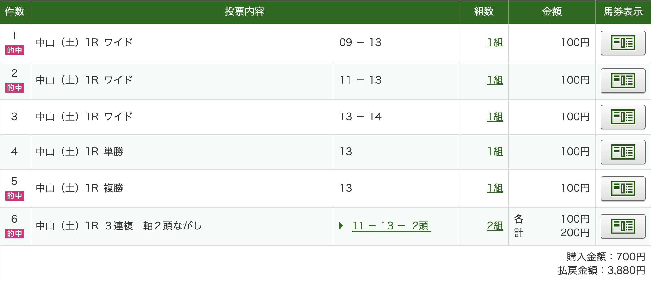 土曜の一発目で遊びで勝ったレースから印通りで的中。このあたりからもう予兆はあったんですね。