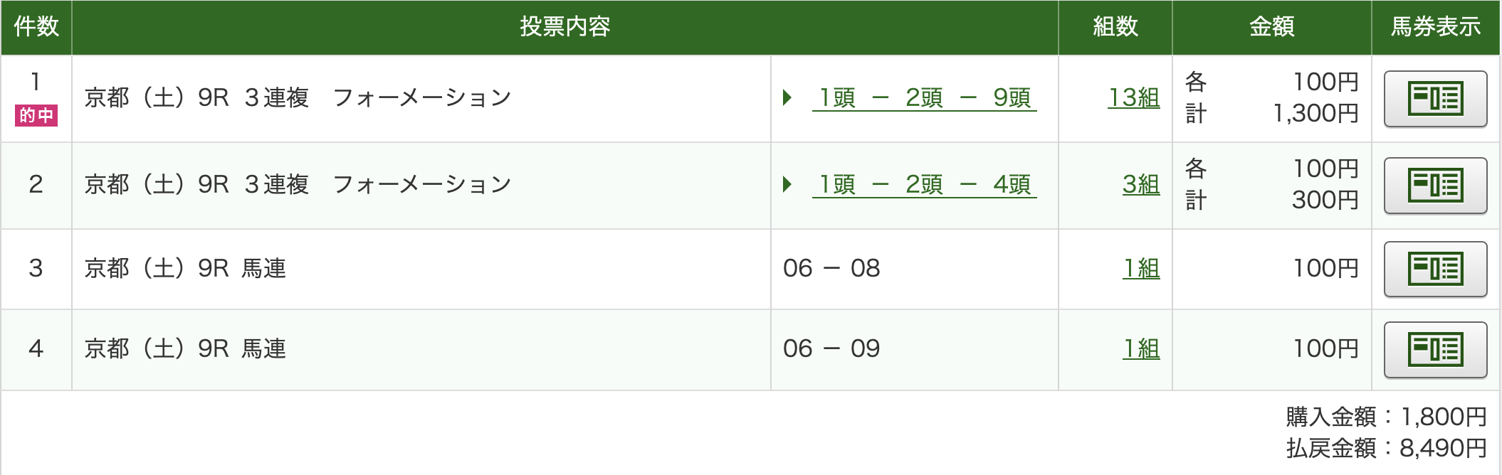馬連 6→8,9 ボーナス