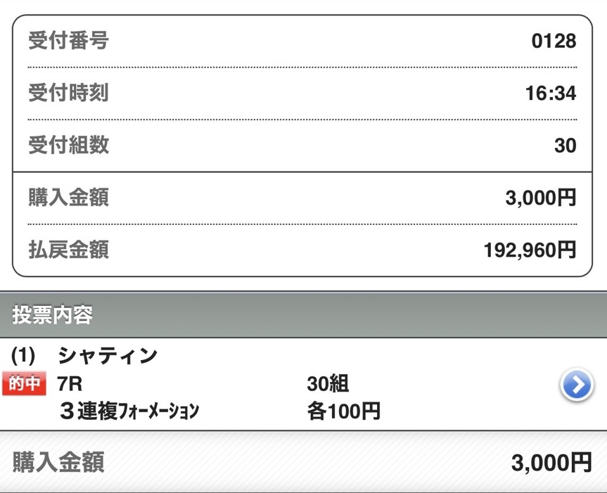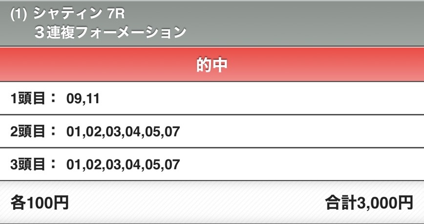 ここは想像以上にノアヴィヴァーチェが人気になってしまいましたが、印3点でそのまま決まって順番通りならよかったんじゃないでしょうか。穴馬からの多点数流しでの高配当も良いですが、こういう印3点でバシッと的中みたいなのも好きです。