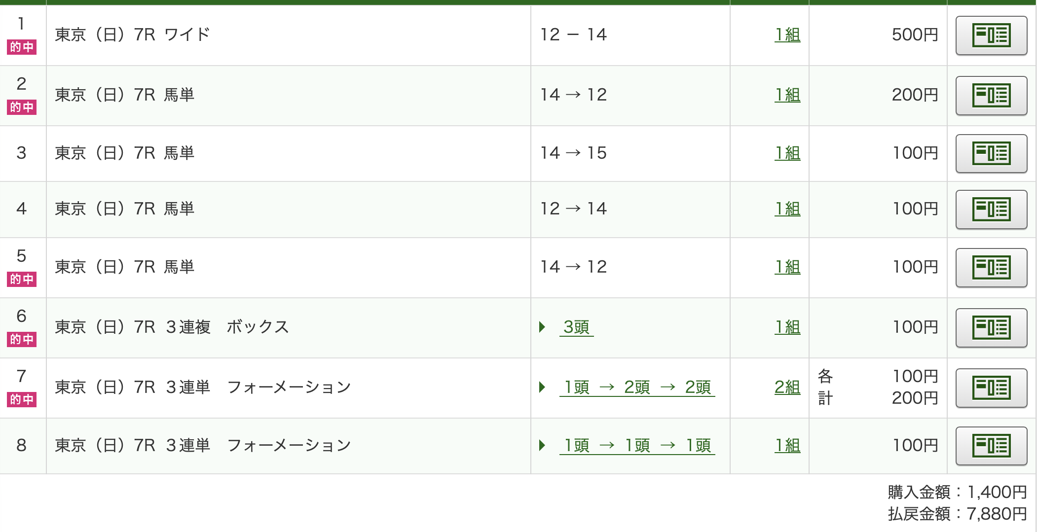 ここは想像以上にノアヴィヴァーチェが人気になってしまいましたが、印3点でそのまま決まって順番通りならよかったんじゃないでしょうか。穴馬からの多点数流しでの高配当も良いですが、こういう印3点でバシッと的中みたいなのも好きです。
