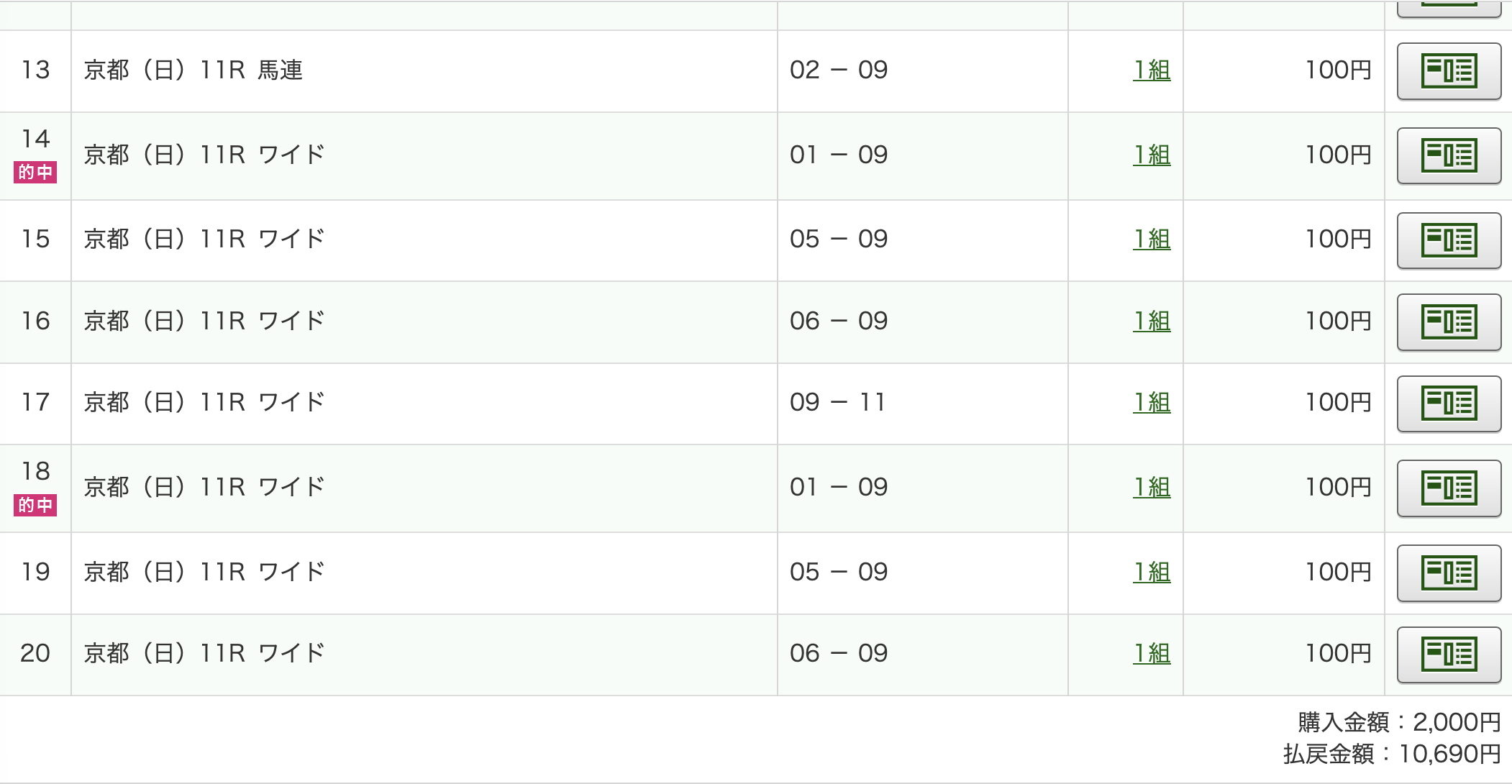 私は安全にワイドだけしか勝っていませんでしたが、会員さんは結構な方が三連複を当てられていて、20万の配当を手にしておりました。羨ましい!!馬券キャプチャをいただいたので貼っておきます。
