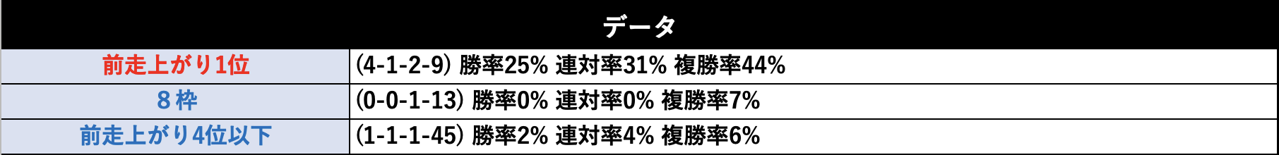 単純に近年のデータだけを見ると「枠順の有利不利なし!」という見解を出しているところもあると思いますが、雨の影響なく高速馬場で行われるならば内枠の方が有利というのは明言しておきたいです。