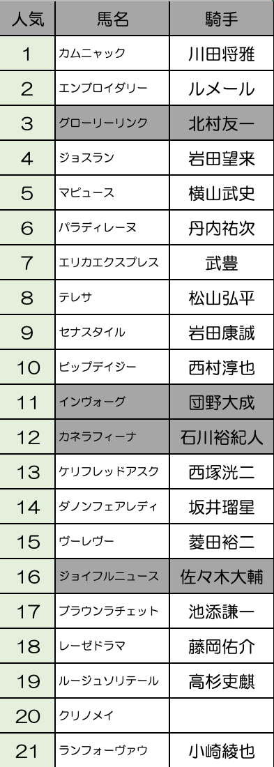 ※灰色背景の4頭は抽選で1頭が出走可能。