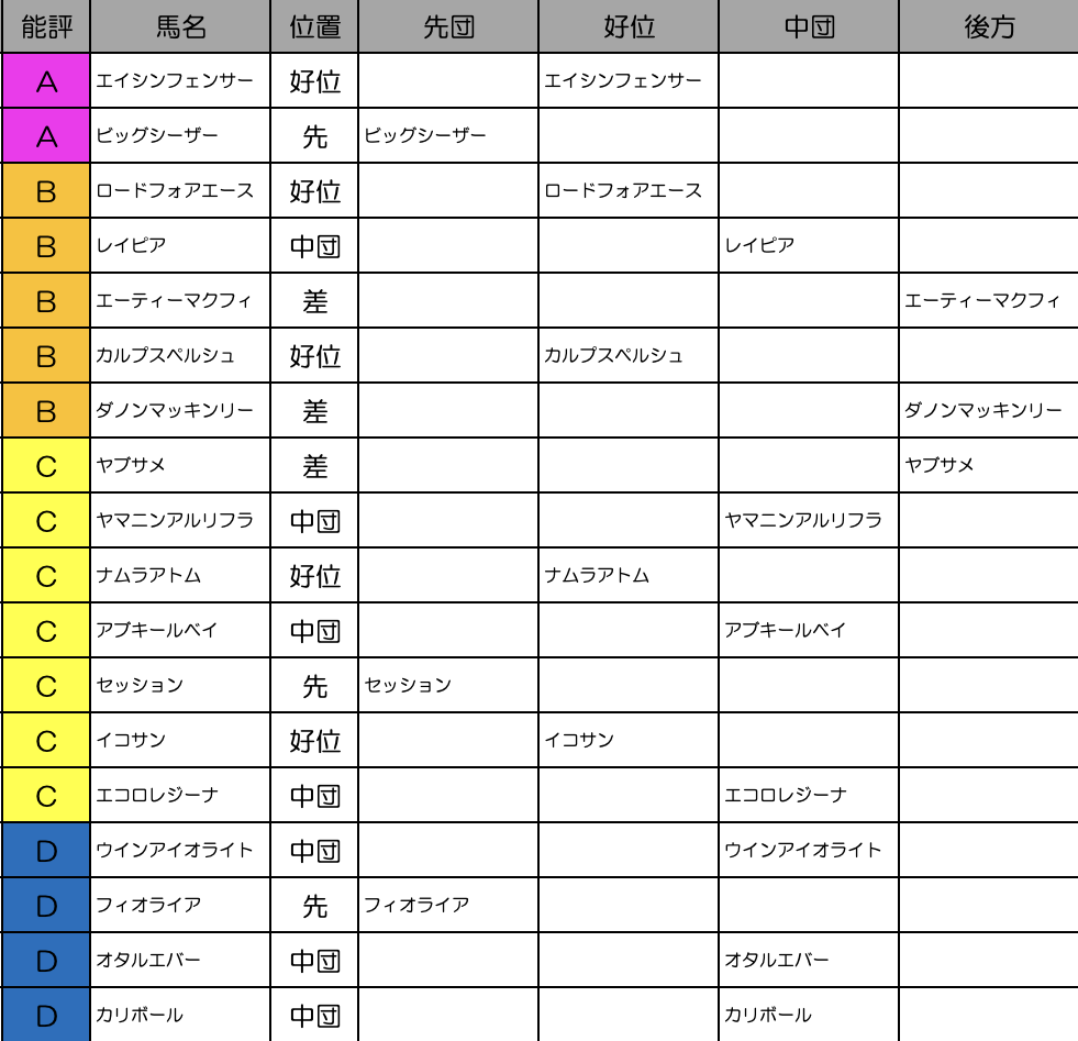 これを見れば縦比較で走破時計やレースラップがどれくらい優秀なのか把握できますし、予想の際にこれを見ればどの馬が強いレースを戦ってきたのかが一目瞭然です。