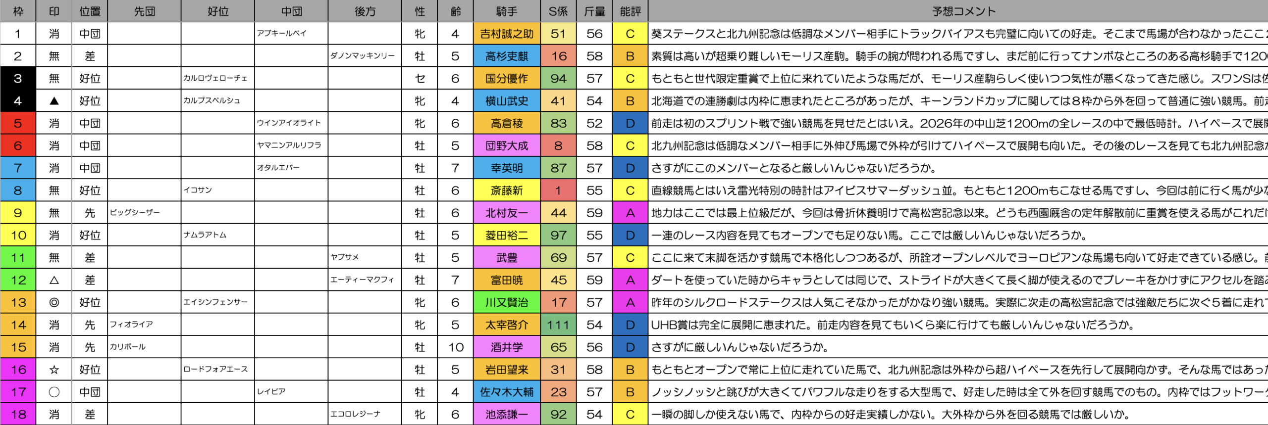 シルクロードステークス2026(京都芝1200m)のレース予想です。