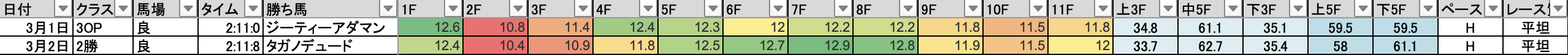 例年の馬場であれば上記の説明だけで十分なのですが、近年は超高速馬場のレースが続いているのであんまりスタミナ寄りのレースになっていない感じ。ここ2年も超高速馬場で行われてこの条件にしては珍しい加速ラップ戦でスタミナよりも瞬発力が問われるレースになっています。