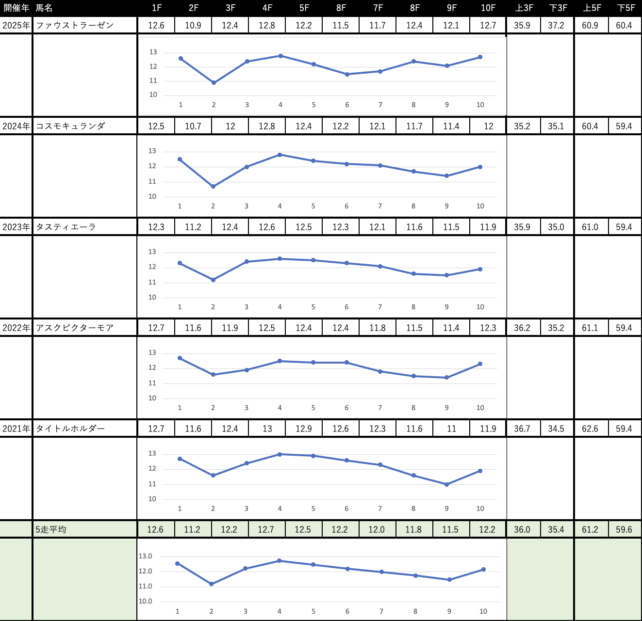 これを見れば縦比較で走破時計やレースラップがどれくらい優秀なのか把握できますし、予想の際にこれを見ればどの馬が強いレースを戦ってきたのかが一目瞭然です。