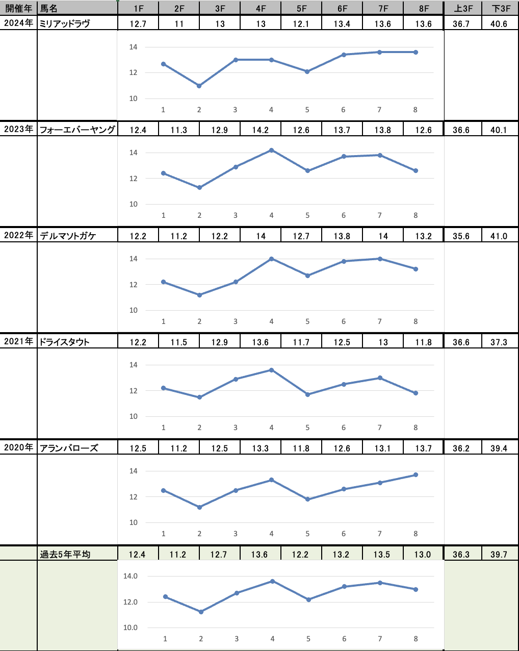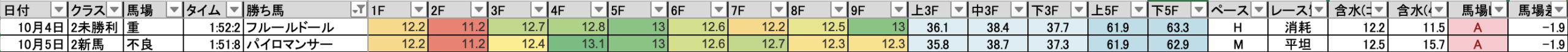 これを見れば縦比較で走破時計やレースラップがどれくらい優秀なのか把握できますし、予想の際にこれを見ればどの馬が強いレースを戦ってきたのかが一目瞭然です。